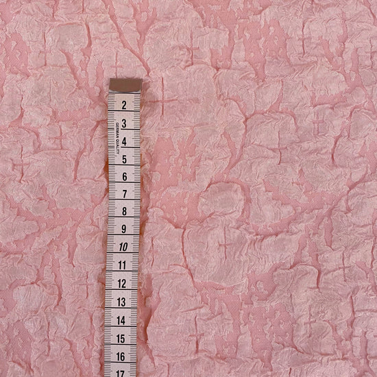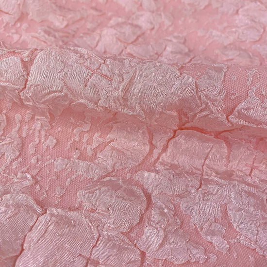 Highly textured, heavy weight double weave with a crinkle motif. Structured drape, opaque with a textured handle, with good stretch in the weft direction and slight to no give in the warp direction.