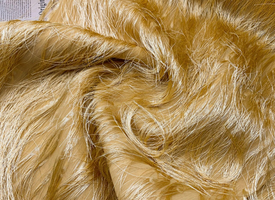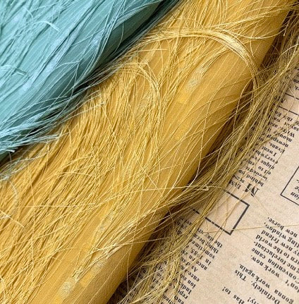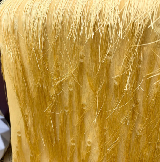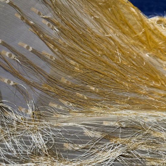 Light weight, sheer plain weave with great drape with dobby weave fringing giving a soft, slightly shiny, light, grass-like handle and appearance.