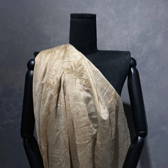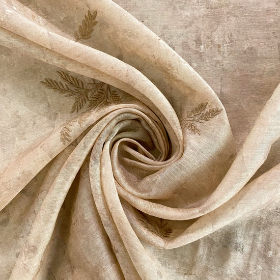 Embroidered Botanical Silk Cotton Voile - Moccasin