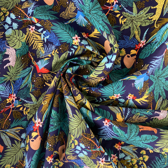 Global Jungle Cotton Lawn - Multicoloured / Navy