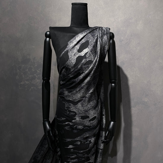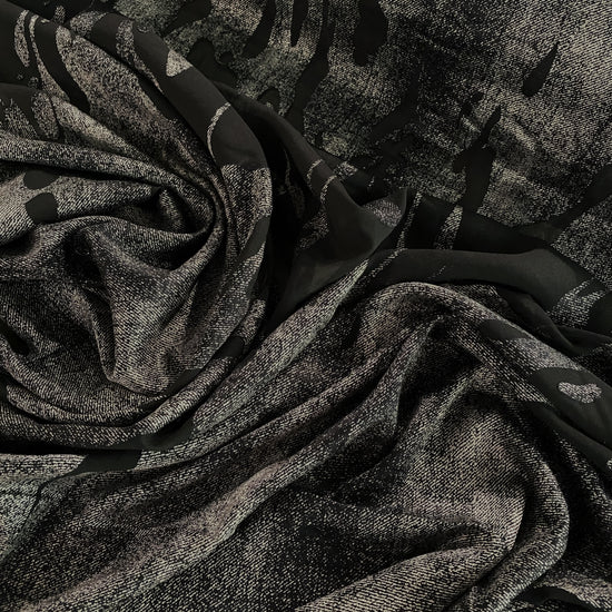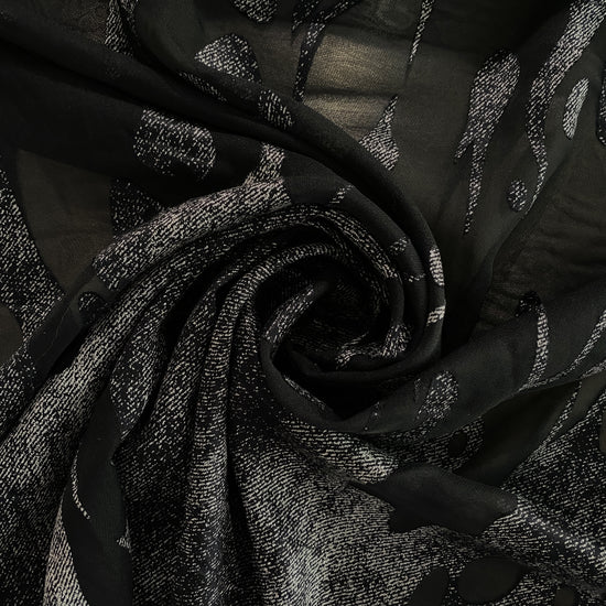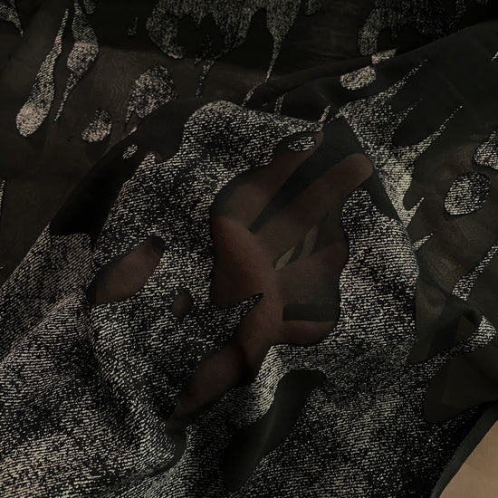Dripping Denim Devoré Burnout Chiffon - Black / Silver