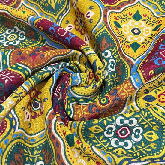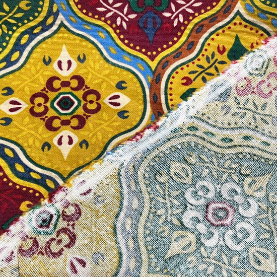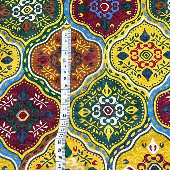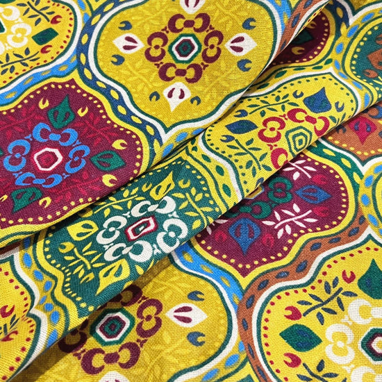 Moroccan Tile Cotton Plain Weave - Yellow/Maroon