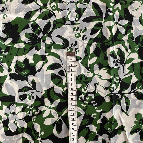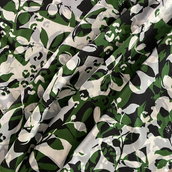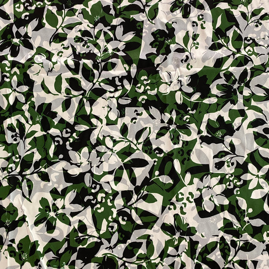 Graphic Floral Stencil Stretch Silk Satin - Green / White