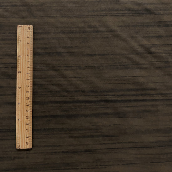 A twill-weave cotton drill with a subtle dark stripe in the warp direction, altering in thickness and tone as if it were paint brush strokes. Medium weight with a voluminous drape and holding some structure. Opaque coverage with a soft, washed cotton handle, matte appearance and has no give in either direction.