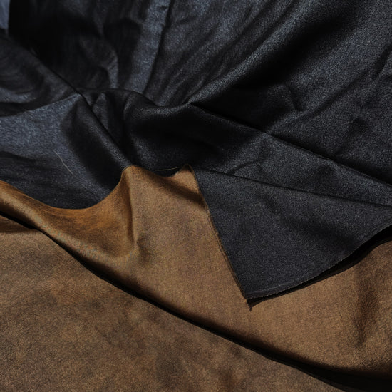 A light weight, opaque, non-stretch plain weave with great drape, a grainy handle and natural colour variations throughout. Naturally dyed using traditional Chinese methods.