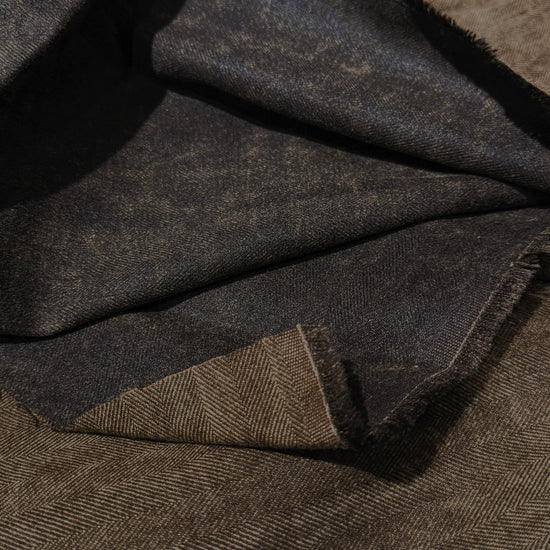 A medium to heavy weight, no-give, opaque herringbone with minimal drape, soft, warm handle and natural colour variations throughout. Naturally dyed using traditional Chinese methods.