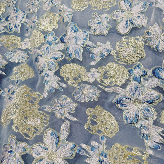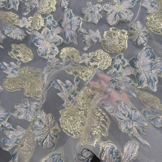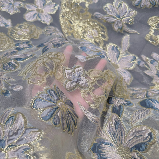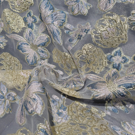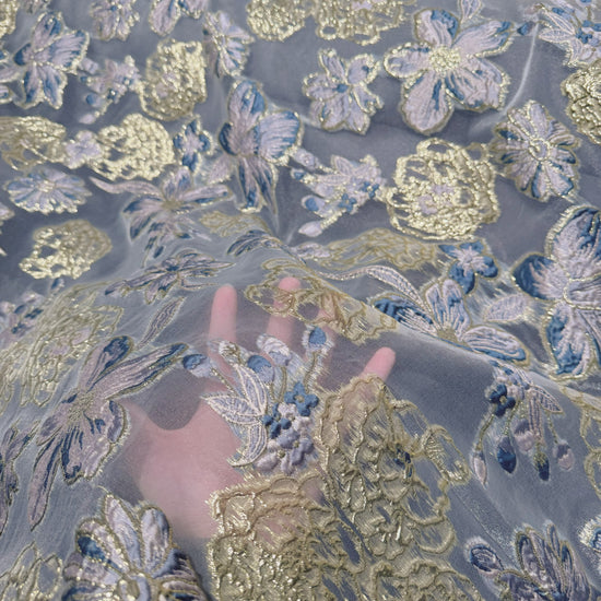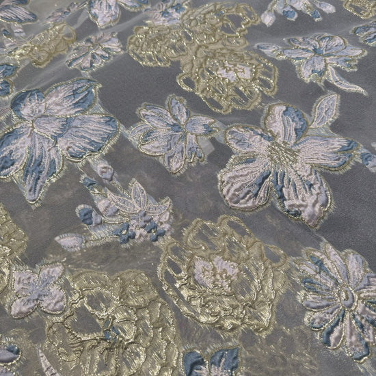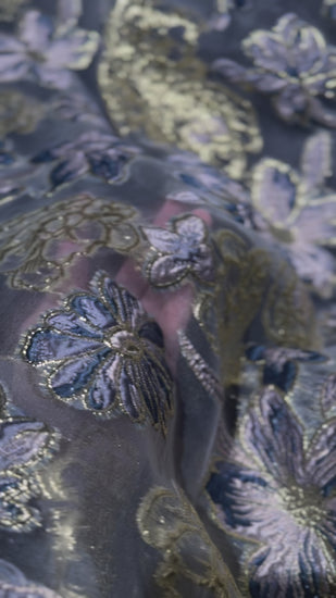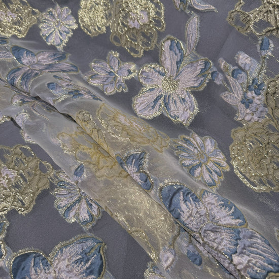 Large Metallic Floral Organza Brocade - Slate Blue/Lavender