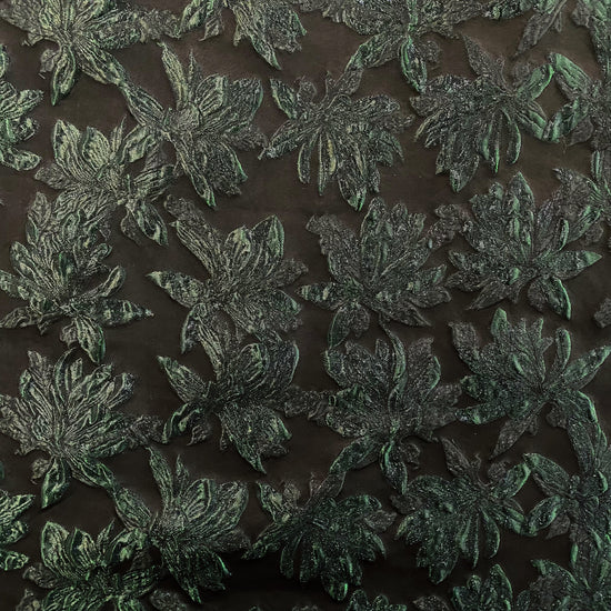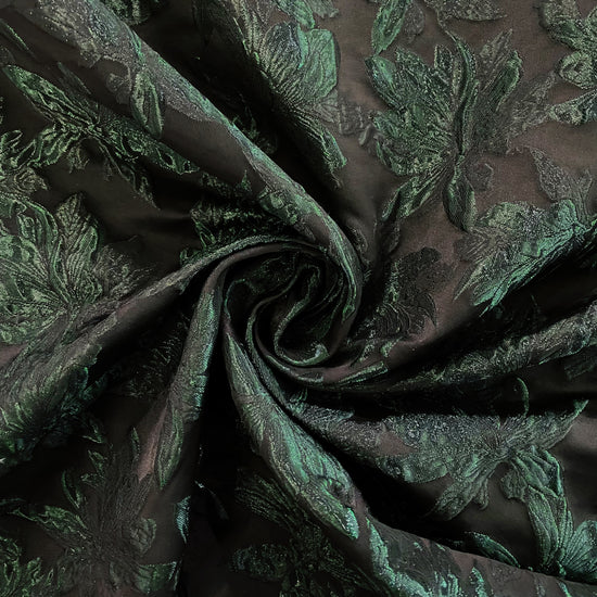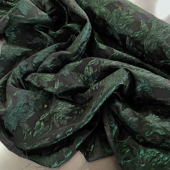 Gilded Lily Cloqué Brocade - Dark Green / Black
