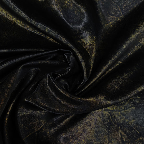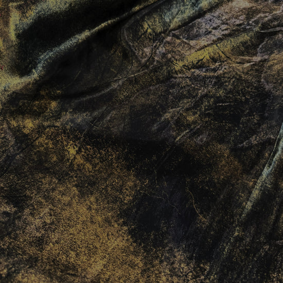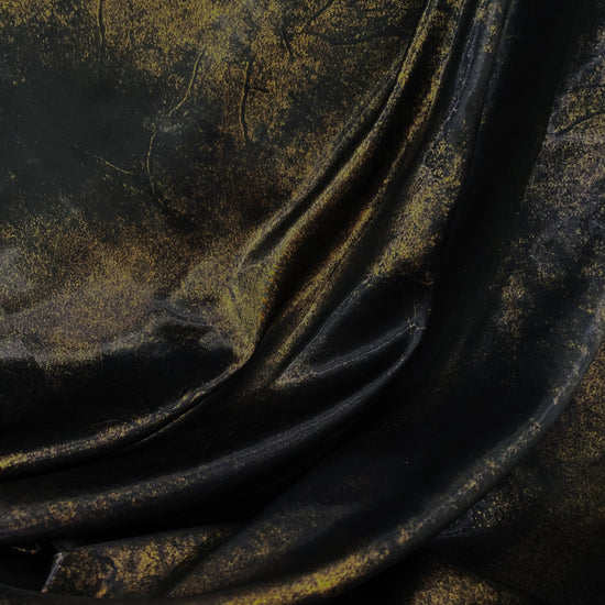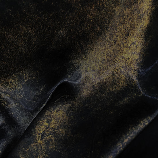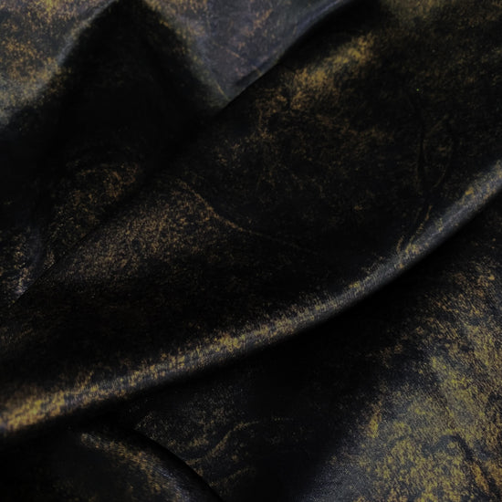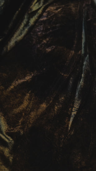 An opaque, light to medium weight oxidised patina satin with a very smooth, soft handle, great drape, shiny appearance and no stretch.