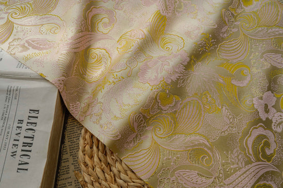 Floral Art Nouveau Jacquard - Metallic - Yellow/Pale Pink