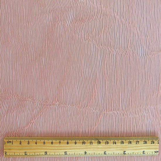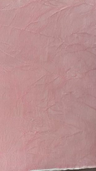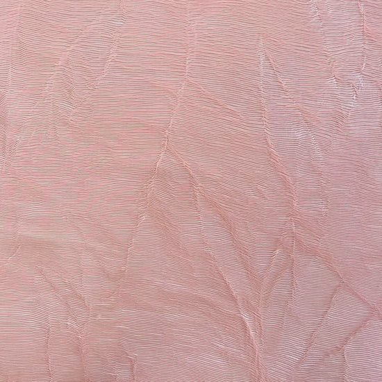 This medium-heavy weight organza has a loose weave, matte appearance, and a fine corrugated handle. It has a structural drape, opaque coverage, and no stretch.