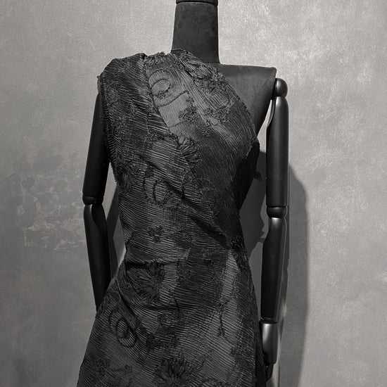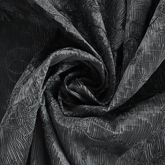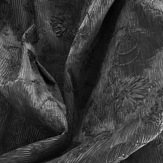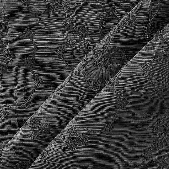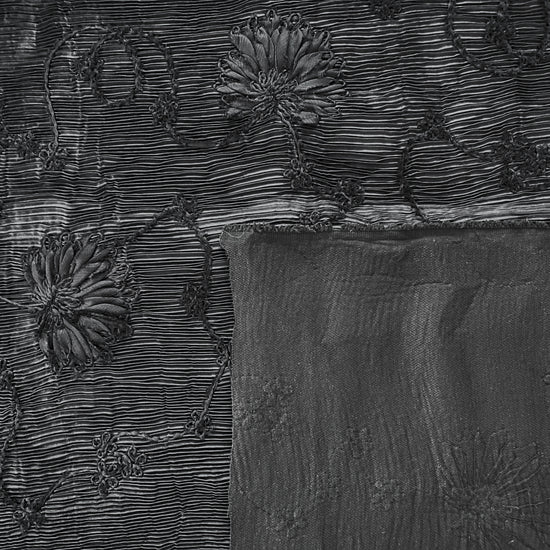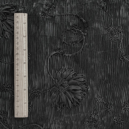 Bonded Plisse with 3D Floral Embroidery - Black