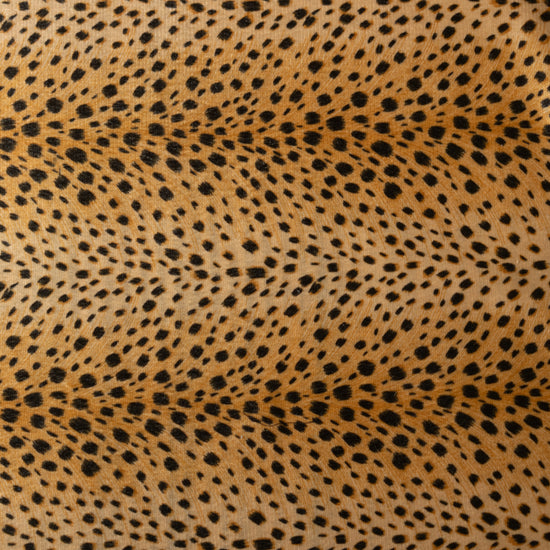 A light to medium weight, opaque, velour with some stretch in the weft direction. It has a soft, malleable handle, realistic cheetah skin appearance and structured drape.