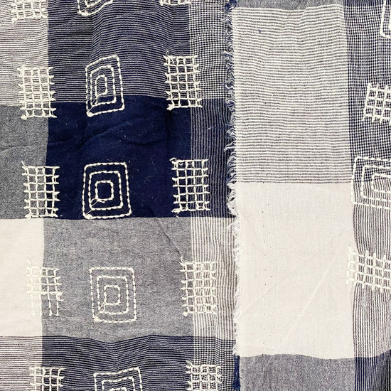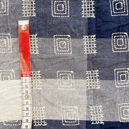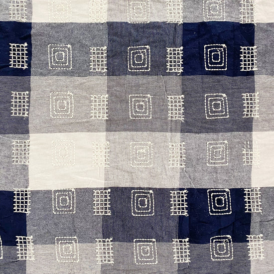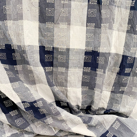 Square Grid Embroidered Cotton Gingham - Steel Blue