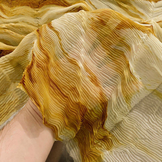 Flame Print Plisse Chiffon - Dark Goldenrod / Pale Yellow