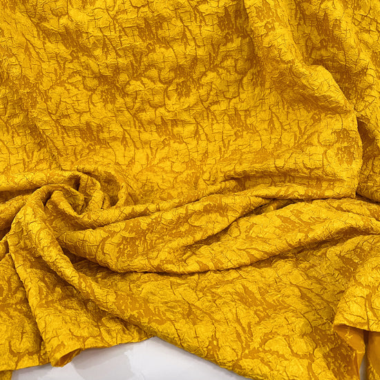 Highly textured, heavy weight double weave with a crinkle motif. Structured drape, opaque with a textured handle, with good stretch in the weft direction and slight to no give in the warp direction.