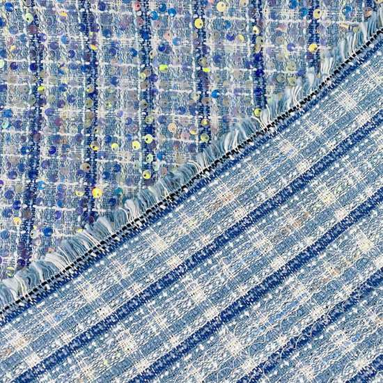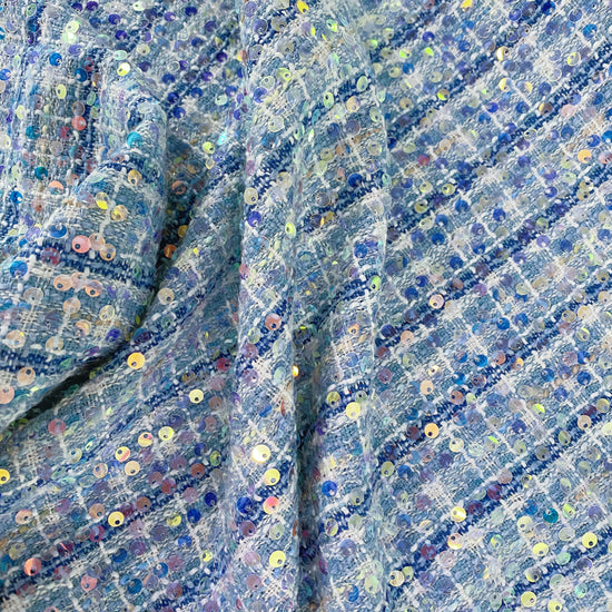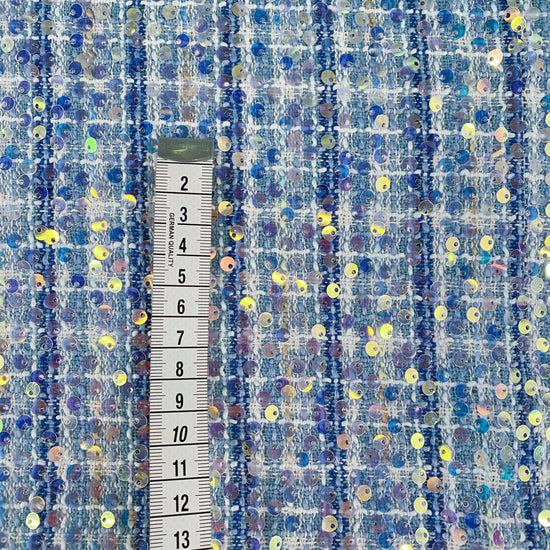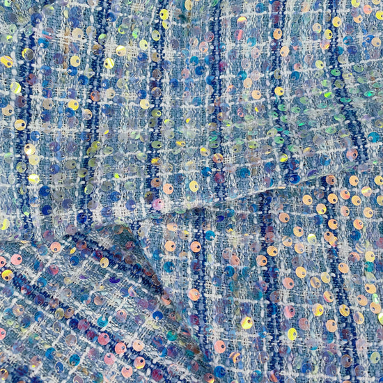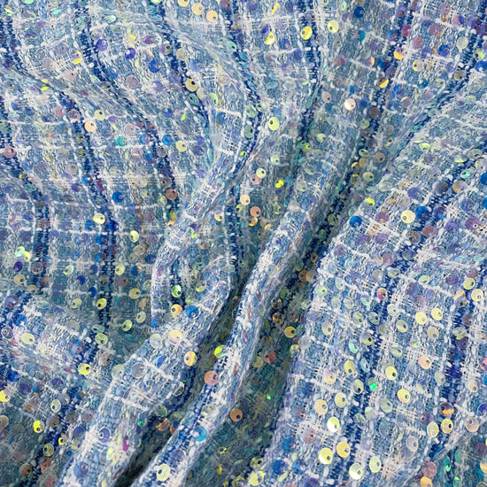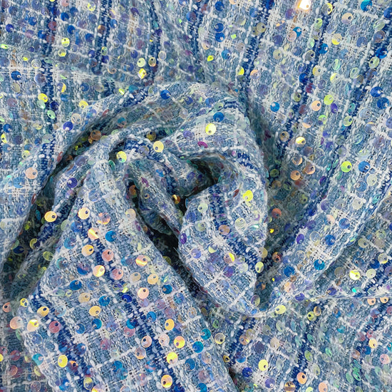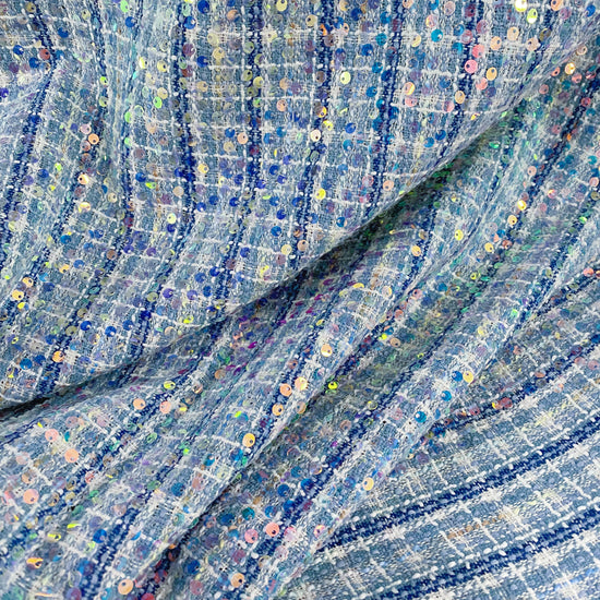 Sequinned Poly/PET Tweed - Blue