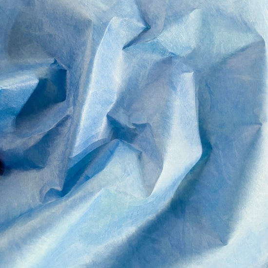 Single layer paper-like non-woven Tyvek, structured hold with a stiff drape, smooth handle, opaque coverage, with no ease or give.