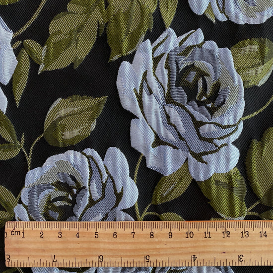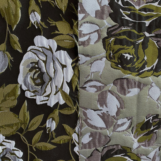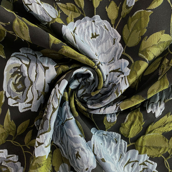 Winter Rose Cloqué Brocade - Powder Blue / Olive Drab / Charcoal