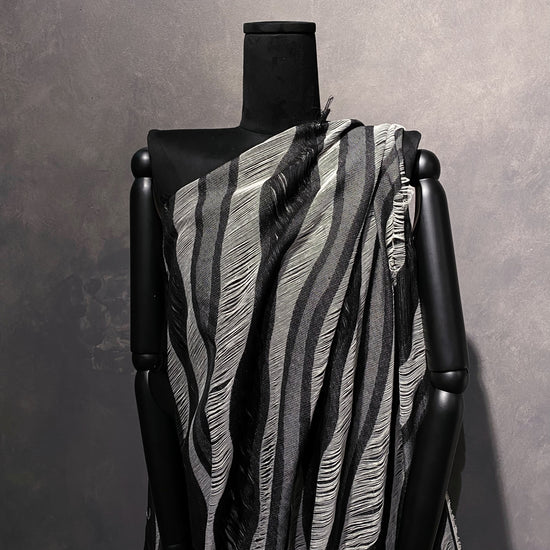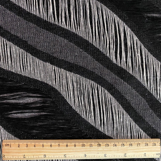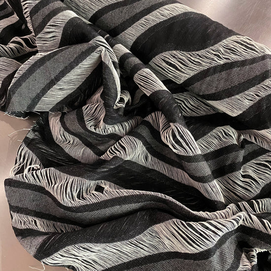Yarn Float Fringed Wave Denim - Black / Grey / White