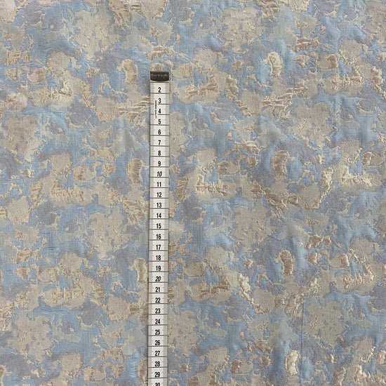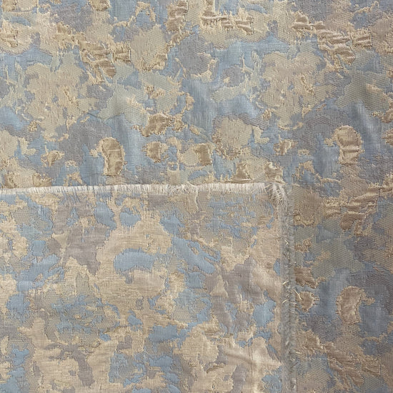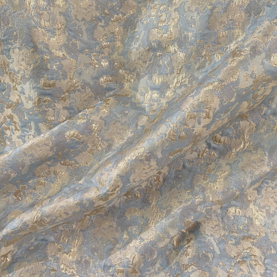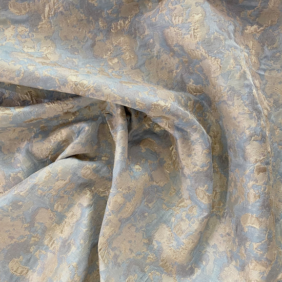 A medium weight, opaque, minimal give jacquard with soft, slightly grainy handle, semi-shiny, textured appearance and minimal drape.