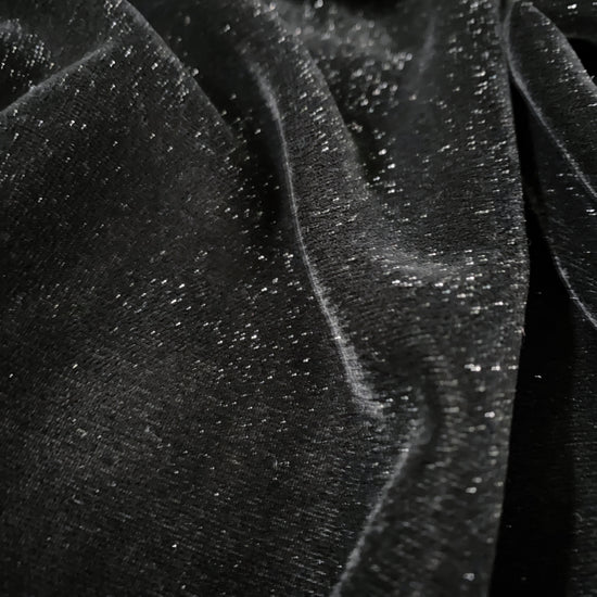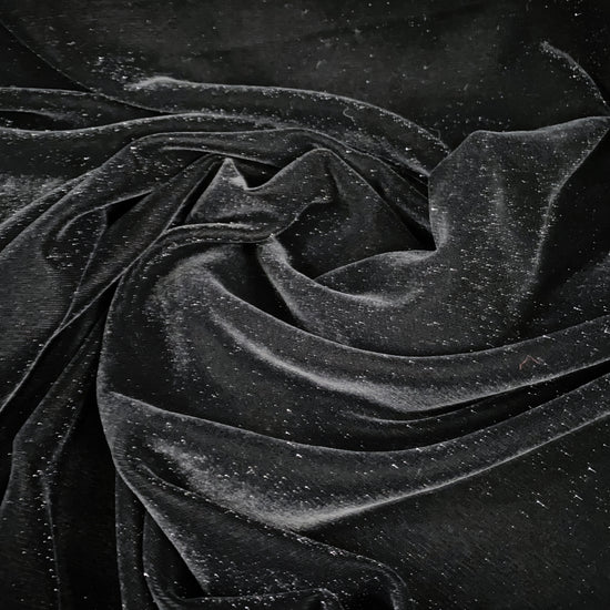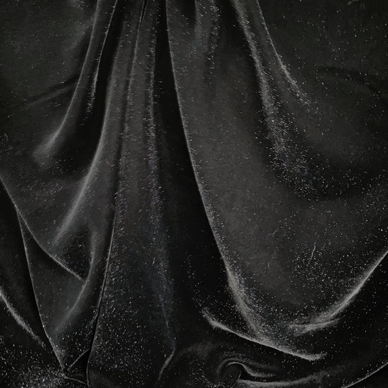 Soft and silky micro velvet perfect for evening wear with a heavier weight and no stretch in comparison with stretch velvet. Subtle glitter detailing amplified by its flowing drape.