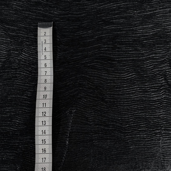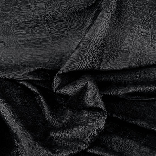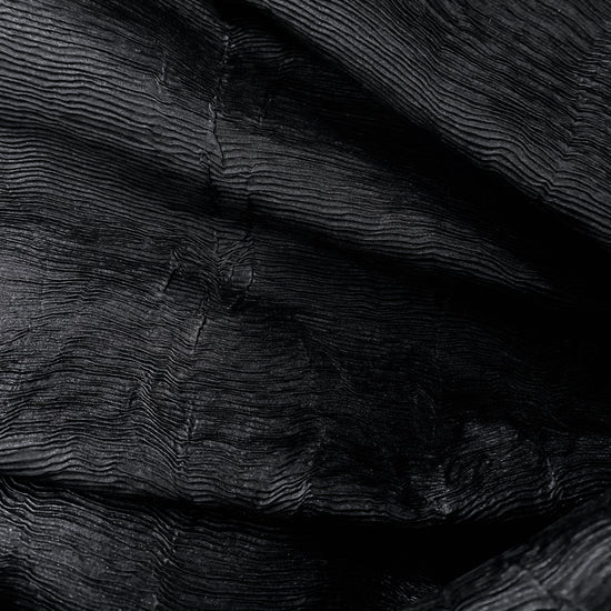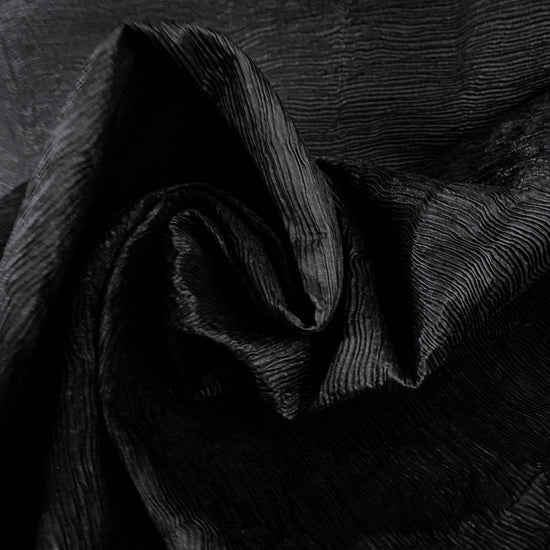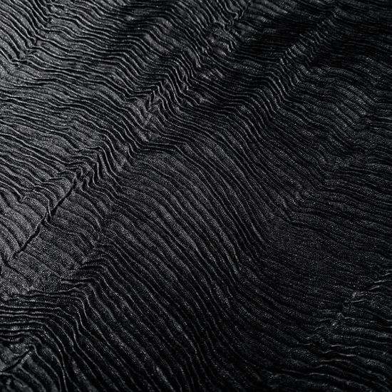 A light to medium, opaque, bonded poplin plisse with good, structured drape, no stretch, a lightly textured handle and an almost leathery appearance.