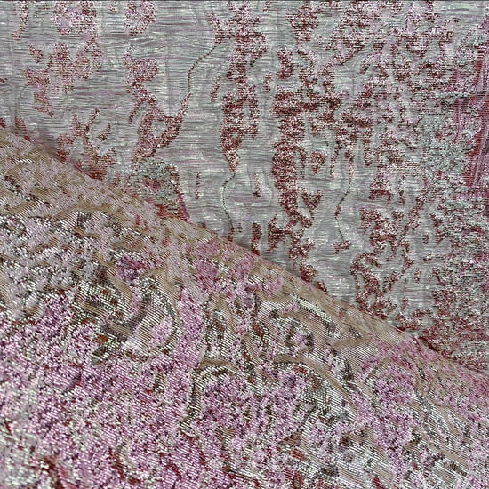 Light to medium weight stone grain metallic brocade with a stiff drape and firm, raised, metallic handle.