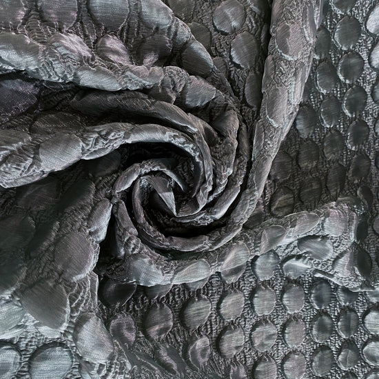 3D Dot Satin Grain Plisse - Metallic Warp - Silver / Smoke Grey