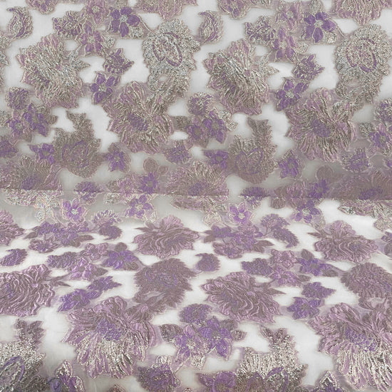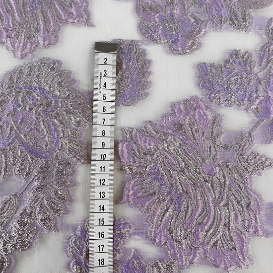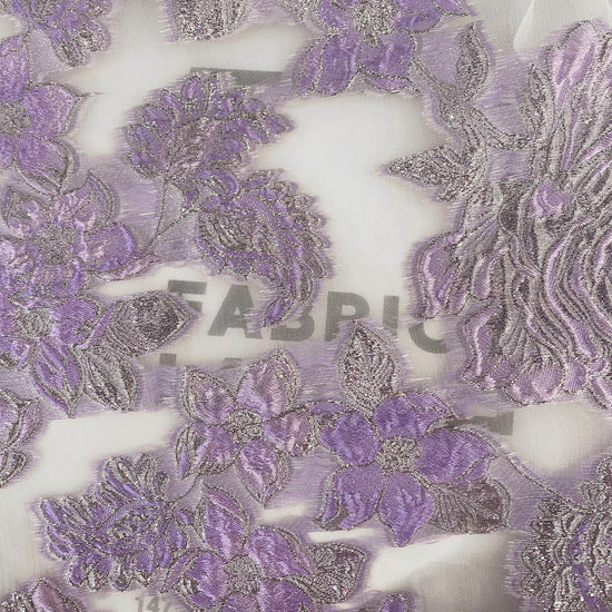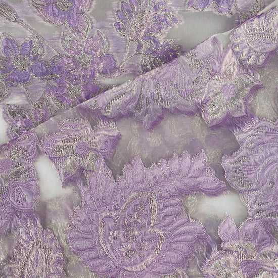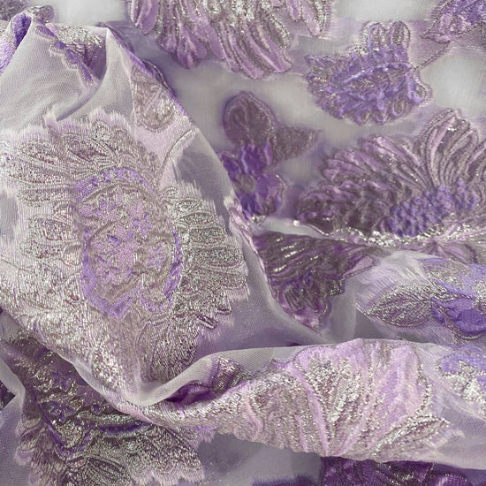Metallic Floral Poly/Nylon/Lurex Brocade Organza - Pale Violet/Silver