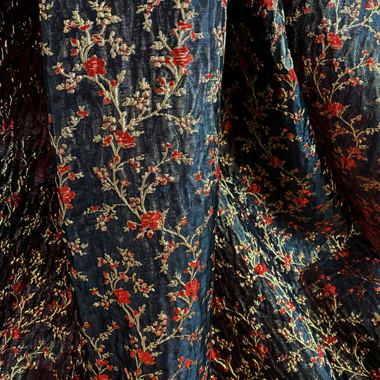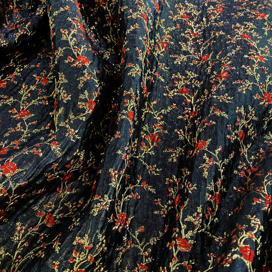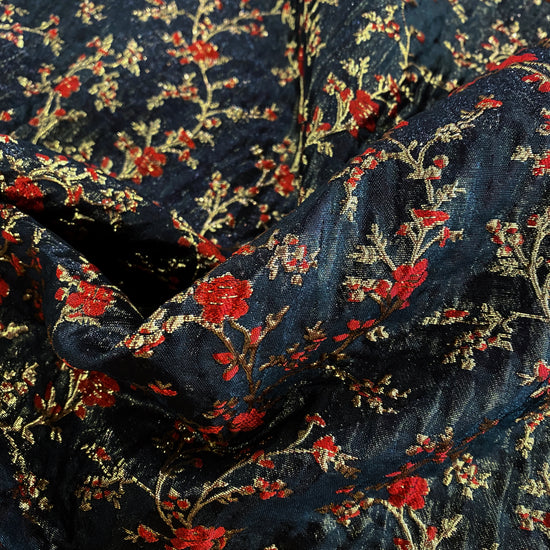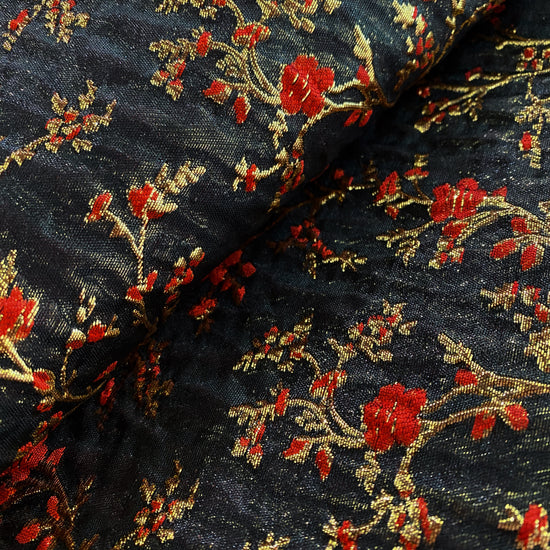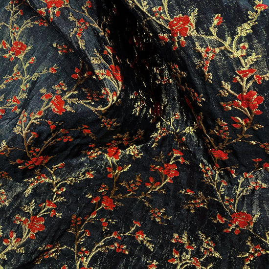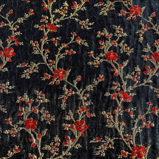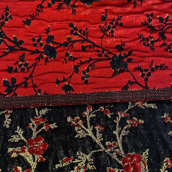 Floral Blossom Brocade - Metallic - Black/Red