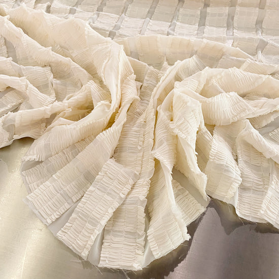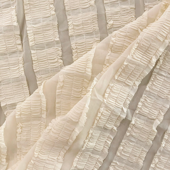 Knife Pleated Striped Chiffon - Ivory (Deadstock)