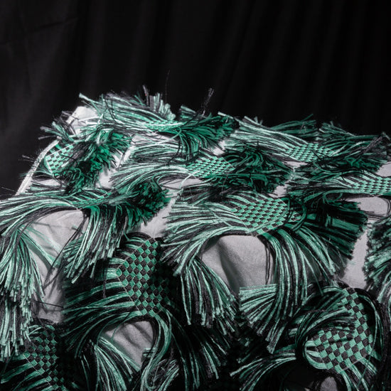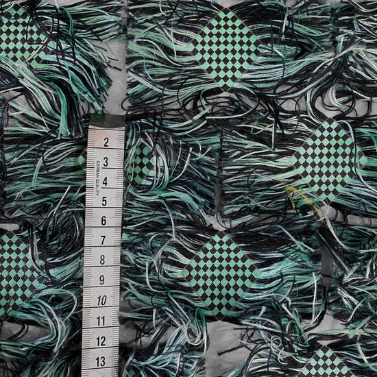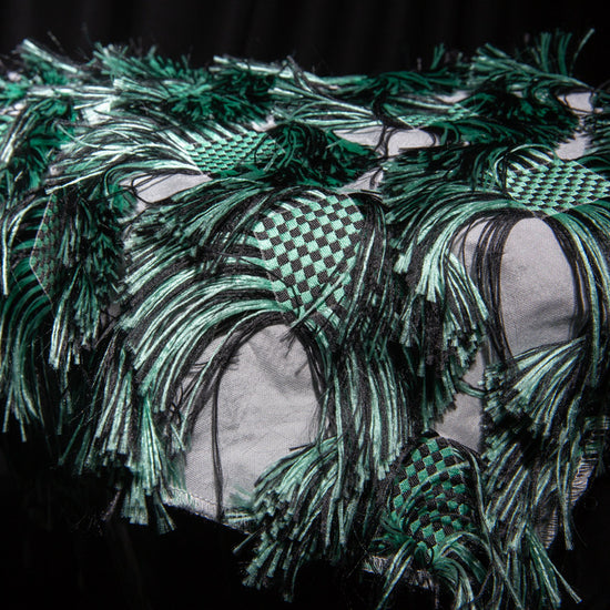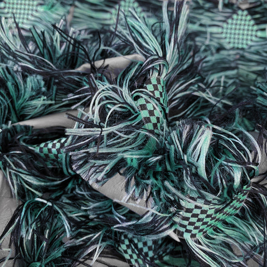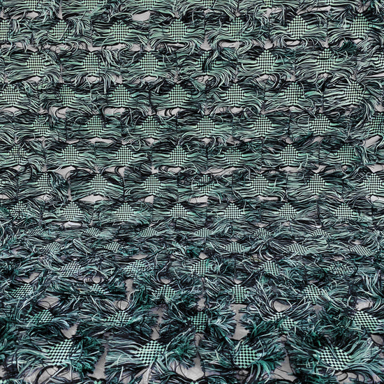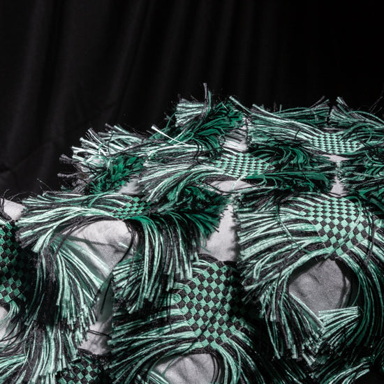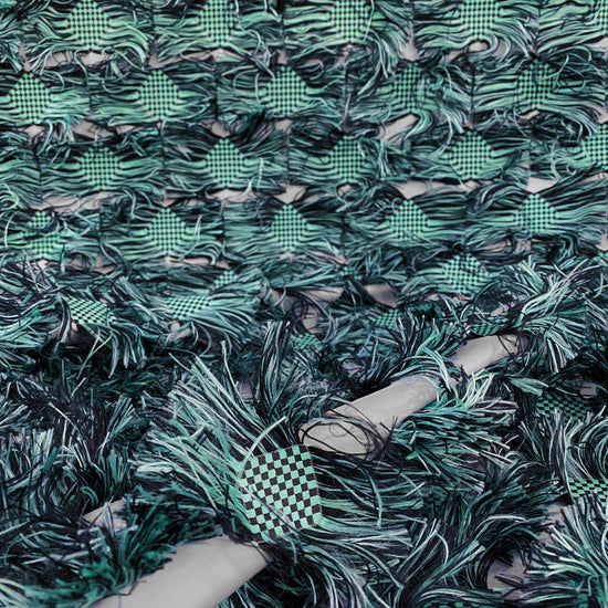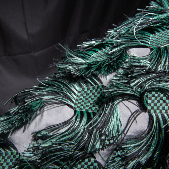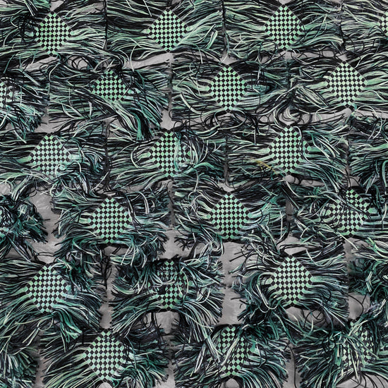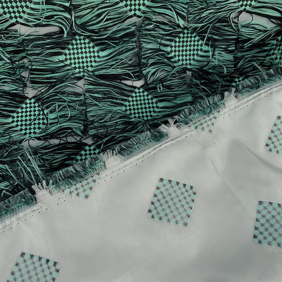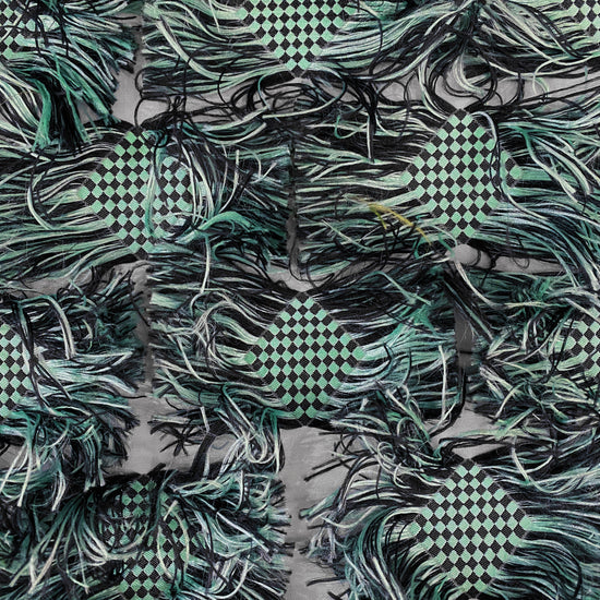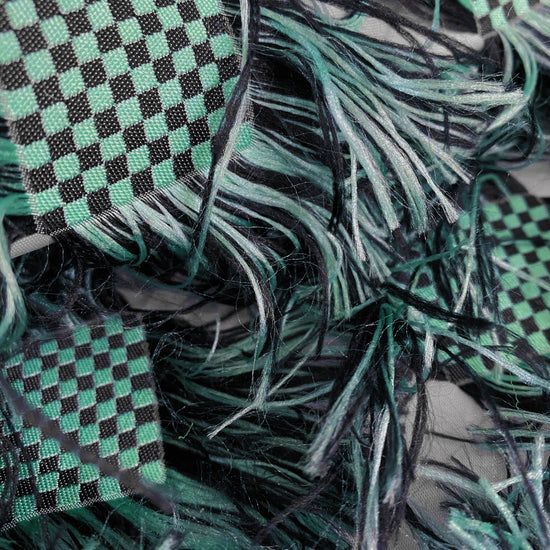 A medium weight, semi opaque fringed checkerboard drill with a soft, textured and canvas handle, structured heavy drape and no stretch.