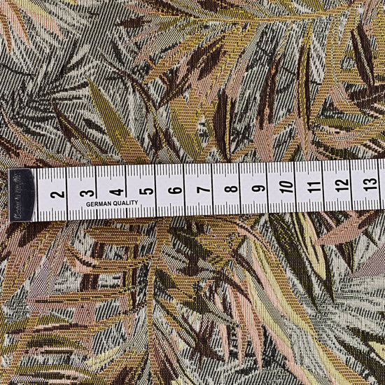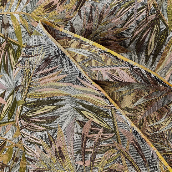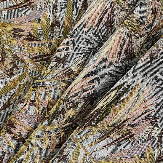 A medium weight, opaque jacquard with no give. It has a slightly grainy handle, minimal drape and subtle patina.