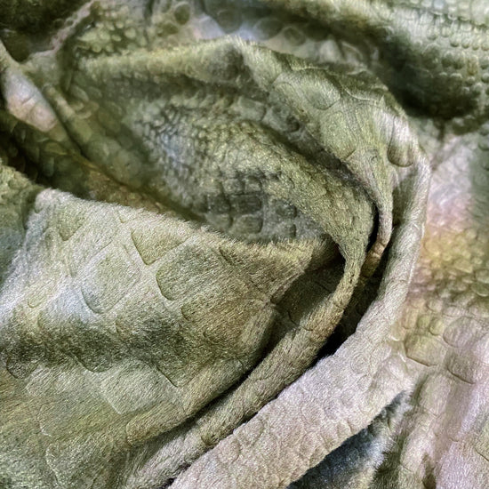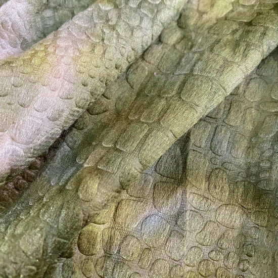 Knitted - Short Cut Pile - Embossed Crocodile Print - Khaki