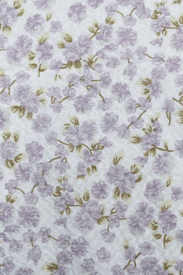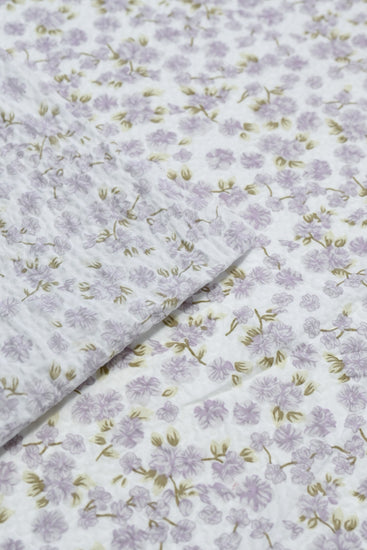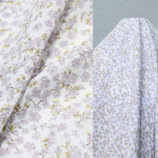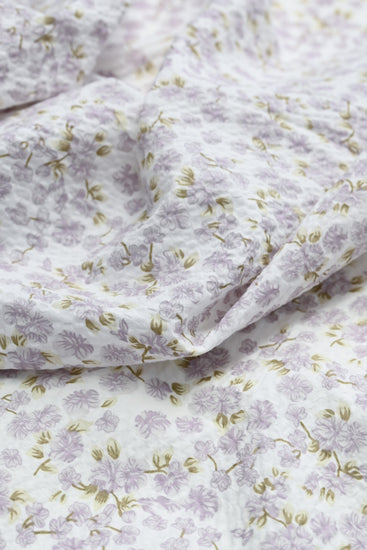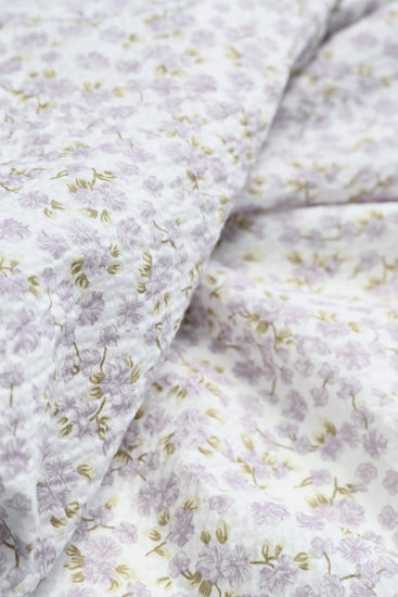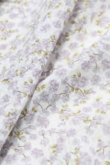 Delicate Floral & Leaf Seersucker - Lavender/Olive