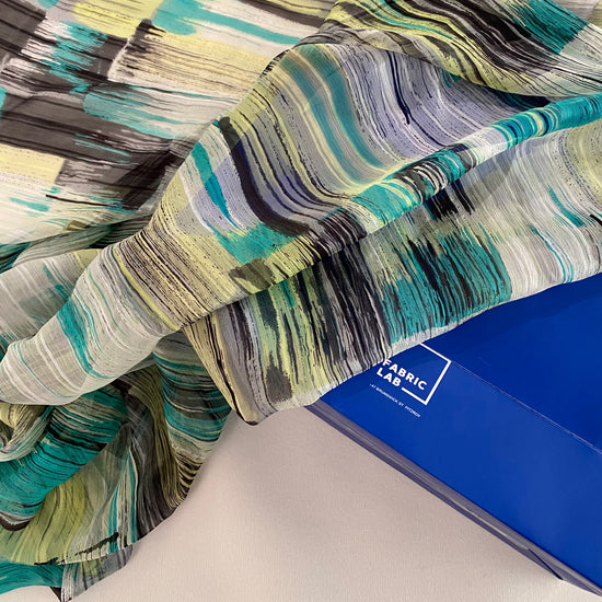 Brushstroke Squares Sheer Silk Chiffon - Aqua/Black