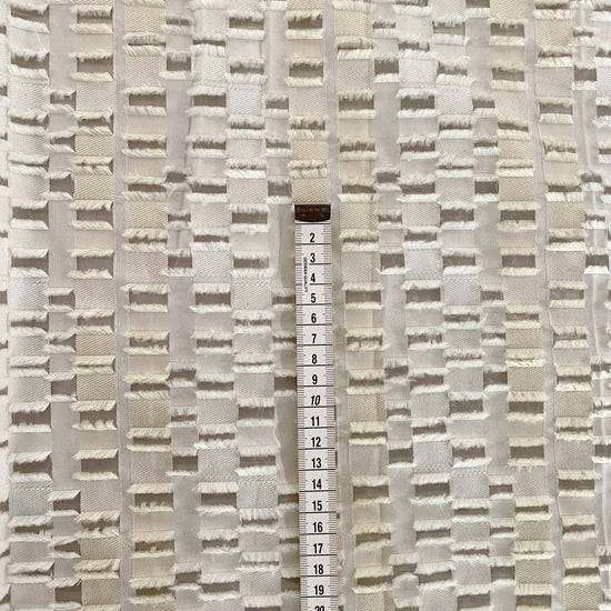 Rectangular Checkerboard Fringe Devore Organza - White / Cream