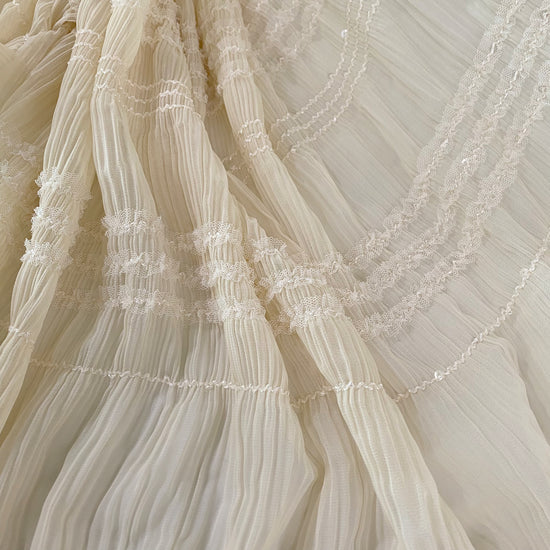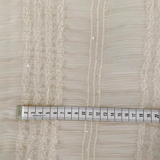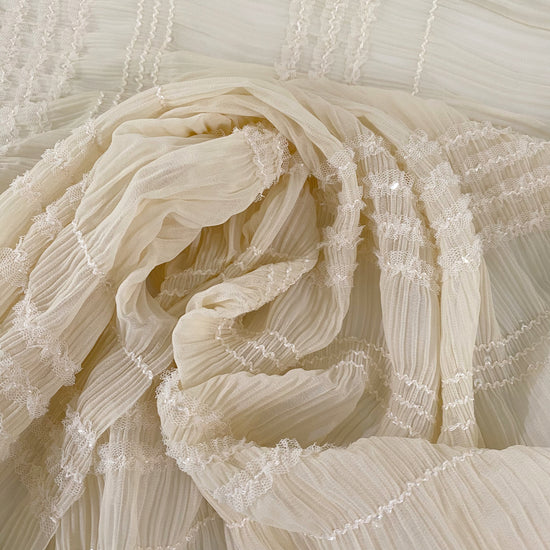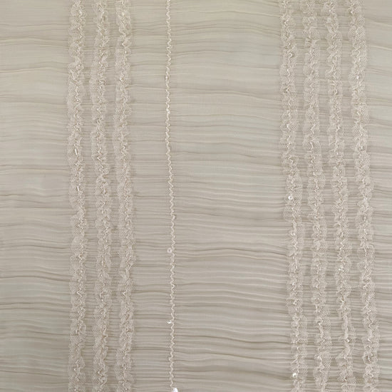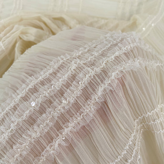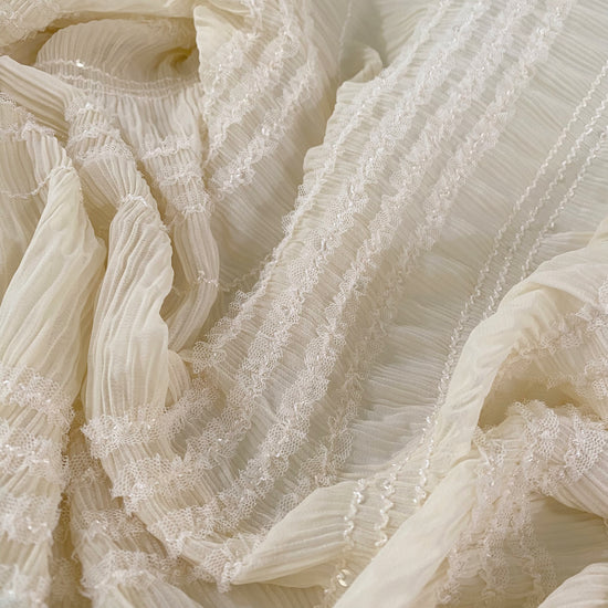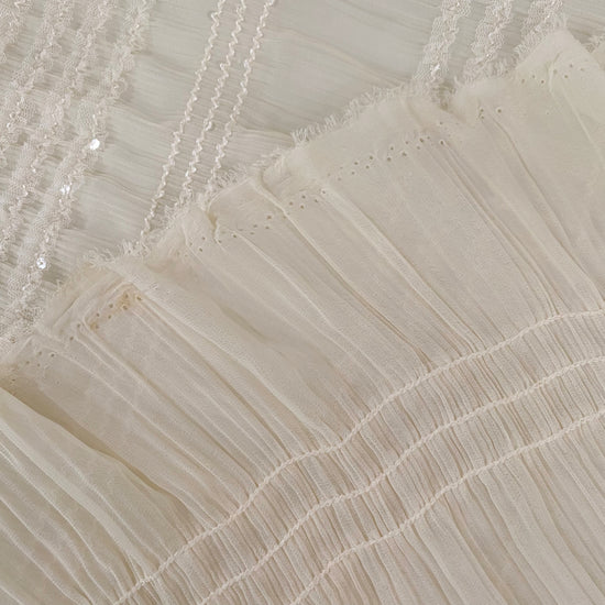 Plisse Chiffon - Sequined Ruffle Trim- Ivory