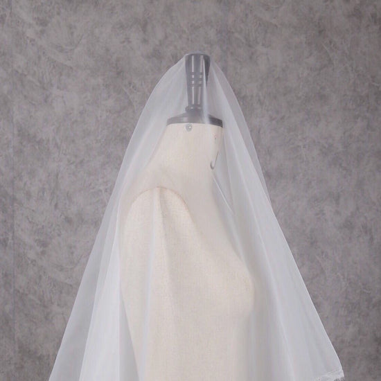 Polyester organza in Ivory. This lightweight fabric has a tight weave with a frosted sheen, and a smooth handle. It has an airy drape with a bounce, semi-sheer coverage, and no stretch.