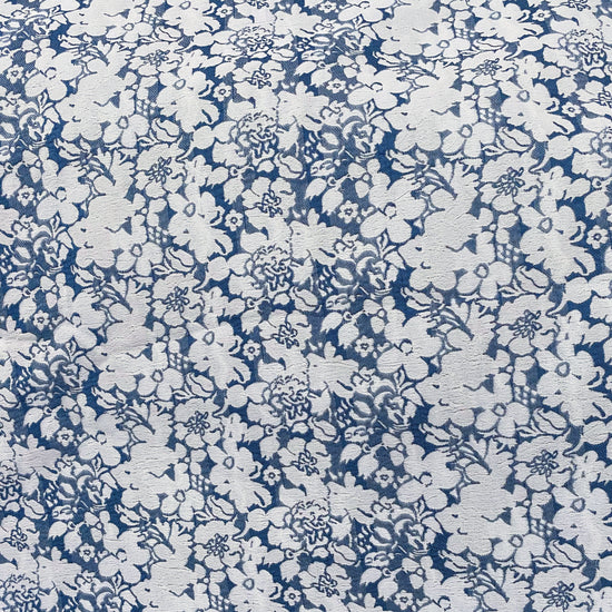 Delicate Floral Poly/Cotton Jacquard - White/Blue Tonal