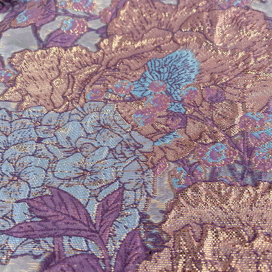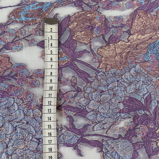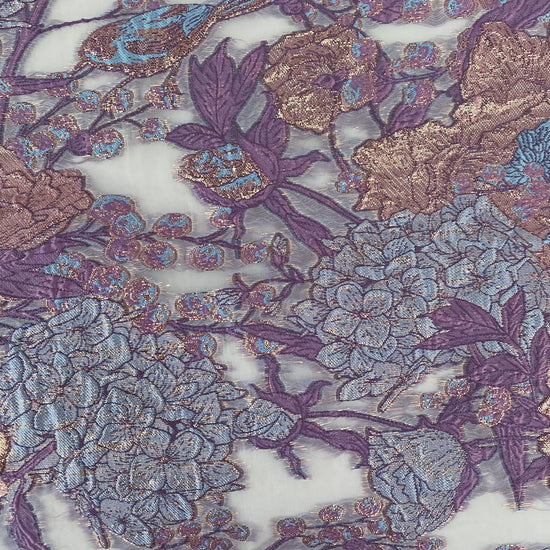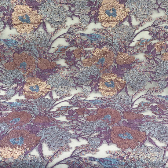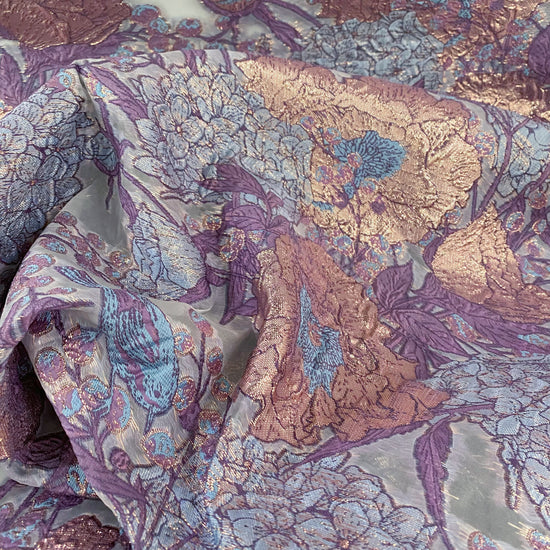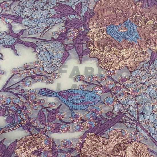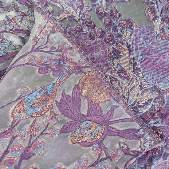 Metallic Floral/Birds Brocade Organza - Pale Violet/Air Blue