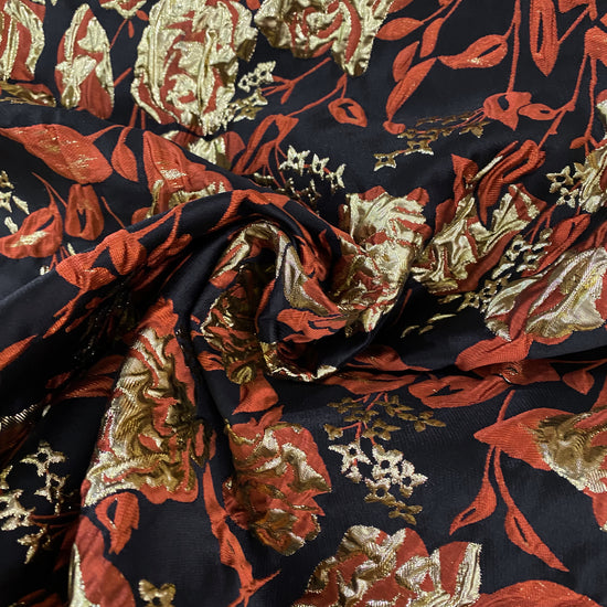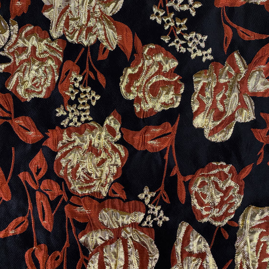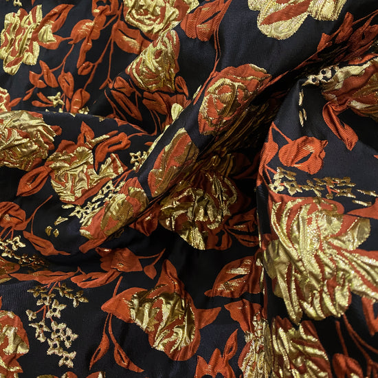 Ornate Rose Brocade - Metallic - Gold/Dark Orange