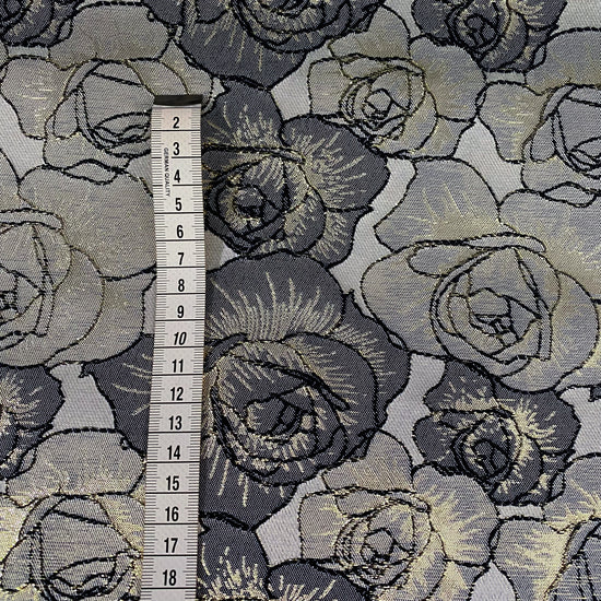 Raised Edge Rose Brocade - Metallic- Silver/Slate Grey