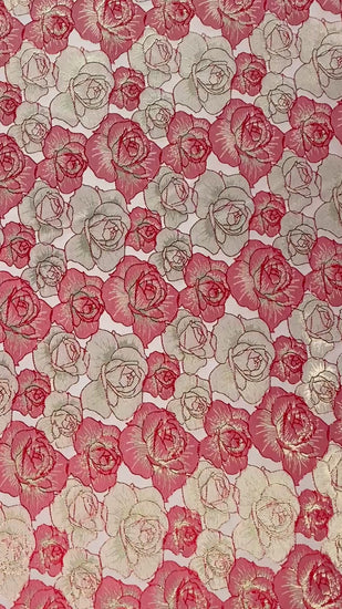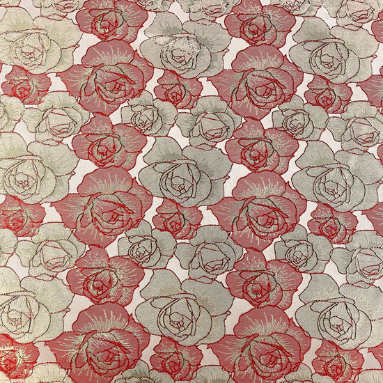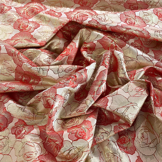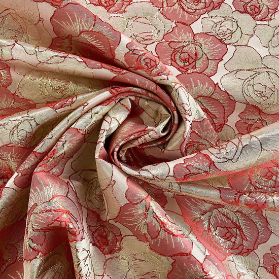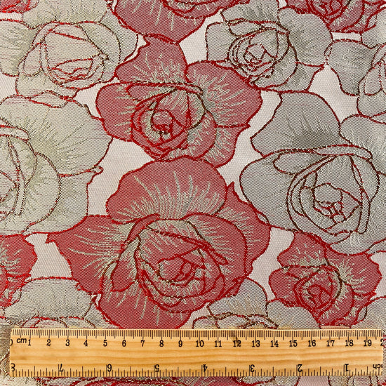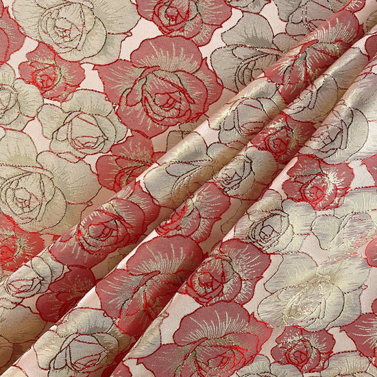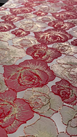 Raised Edge Rose Brocade - Metallic - Crimson/Gold