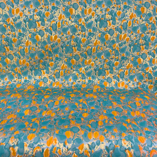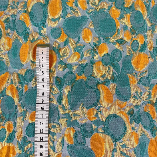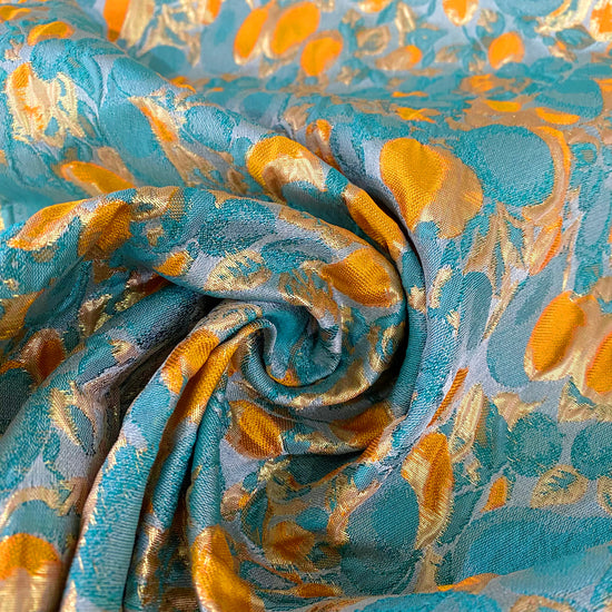 Abstract Garden Poly/Lurex Brocade - Orange/Teal