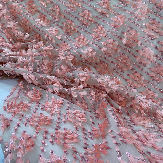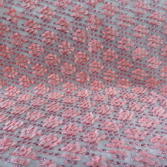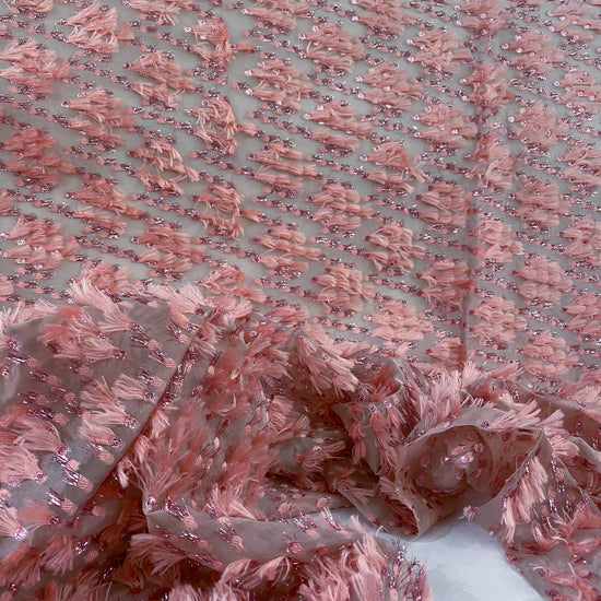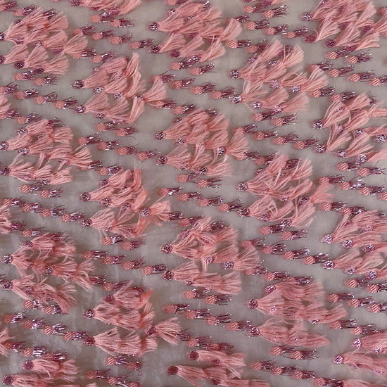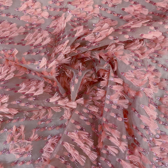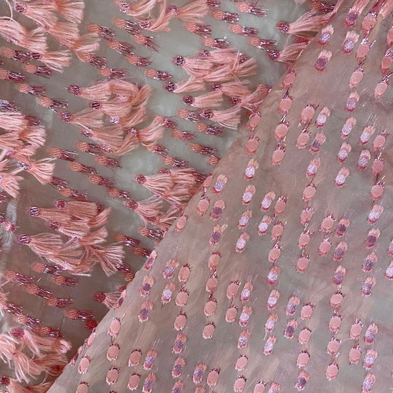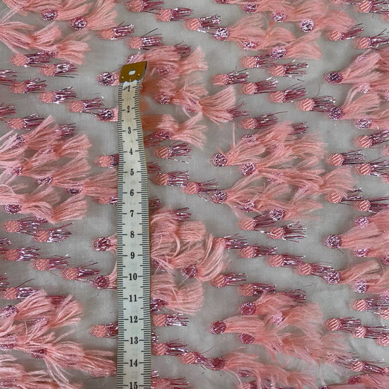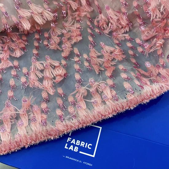 Organza Dobby - Metallic & Faux Fur Fringing - Pink