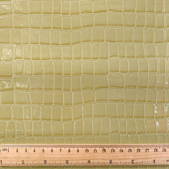 Patent Alligator Faux Leather - Large Pattern - Pale Olive