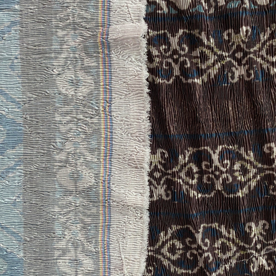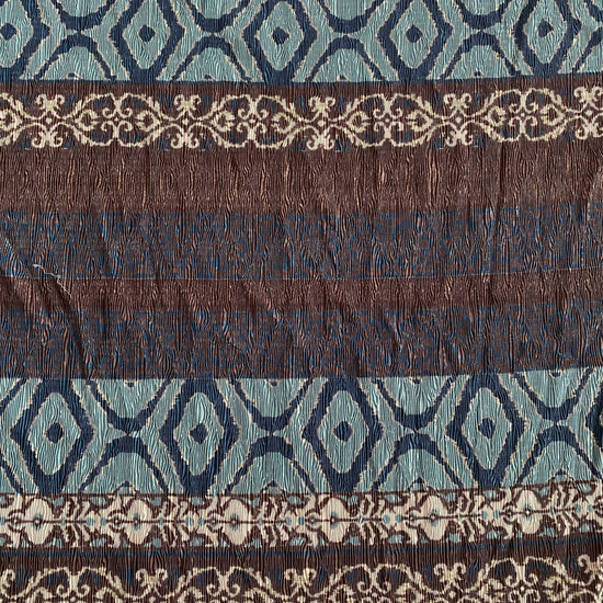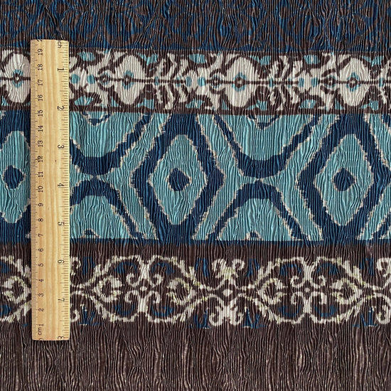 Ikat Woodgrain Plisse Satin - Turquoise / Umber / Cream