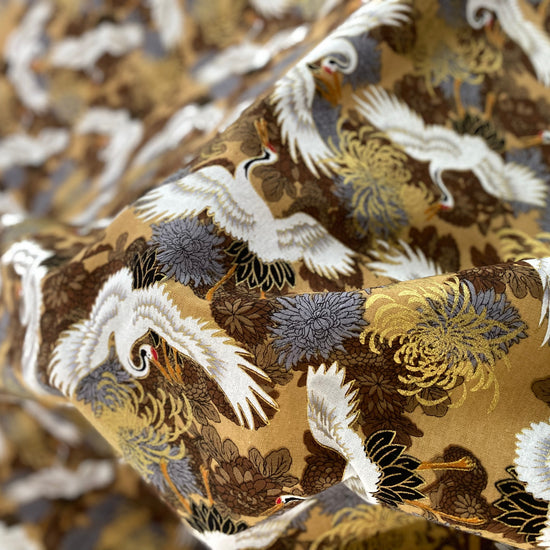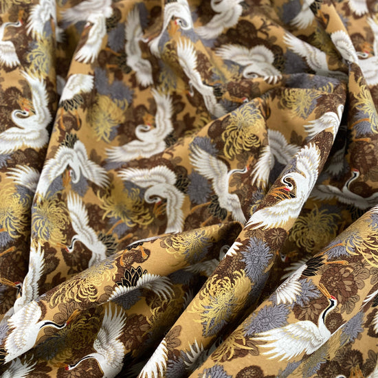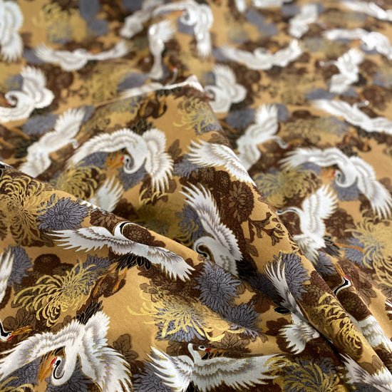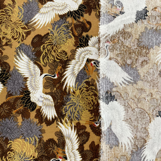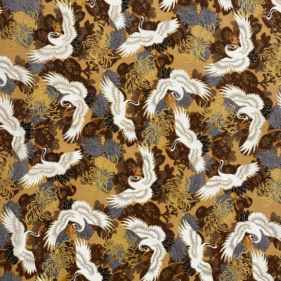 Crane & Chrysanthemum Cotton Broadcloth - White/Fawn